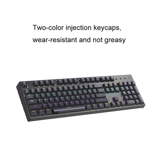 El Teclado mecánico translúcido bicolor de 104 teclas en color Negro es un periférico avanzado diseñado para ofrecer una experiencia de escritura y Juego eficiente y versátil. Compatible con todos los sistemas operativos y dispositivos, este Teclado permite la Conexión mediante Cable USB tipo C, Bluetooth y Conexión 2,4 GHz, adaptándose a diversas necesidades y entornos de uso. Su estructura está fabricada en ABS resistente y cuenta con teclas transparentes de doble color que facilitan la visualización y aportan un diseño moderno. Incorpora una Batería de litio de 3000 mAh que garantiza autonomía prolongada y funciones inteligentes como modo de suspensión y resistencia al agua. Además, dispone de retroiluminación con 26 efectos personalizables y teclas programables, ideales para usuarios que requieren un alto grado de personalización y funcionalidad.