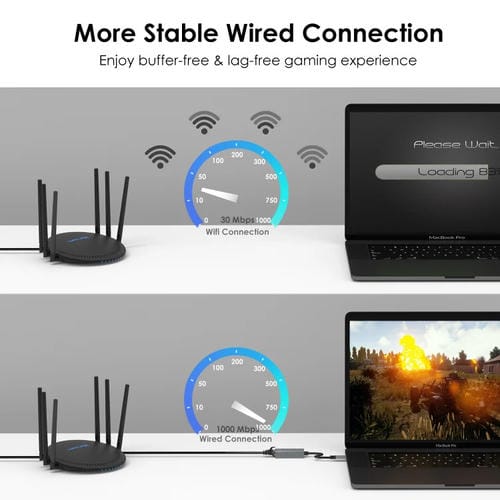 - Conexión de Portátiles o tablets con Puerto Tipo-C a redes Cableadas para mejorar la estabilidad y velocidad de internet