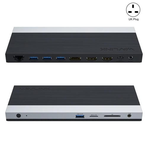 Estación de Acoplamiento Wavlink Umd05 con Puerto de Pantalla, HDMI, RJ45 Ethernet y Triple Pantalla MST para Computadora Portátil (Enchufe del Reino Unido)