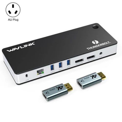 • 1x Docking Station Wavlink UTD21H 11 en 1 4K Dual DisplayPort Hub Converter Thunderbolt 3 (Enchufe AU)