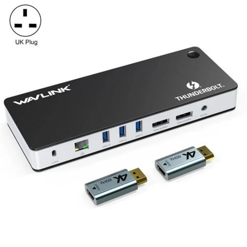 • 1x Hub Converter Wavlink UTD21H 11 en 1 4K Dual DisplayPort Thunderbolt 3 Docking Station (enchufe Reino Unido)