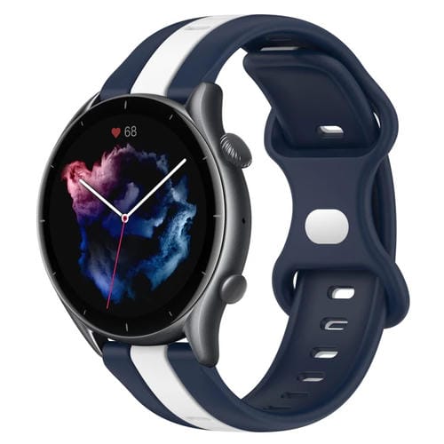 Correa de Silicona para Amazfit GTR 3 22mm con Hebilla de Mariposa (Blanco + Azul)