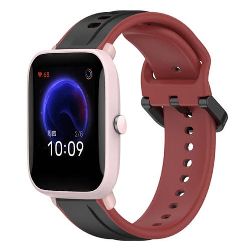 Correa de Reloj Amazfit Pop 20mm Convex Loop silicona dos colores (Rojo + Negro)