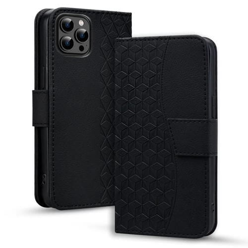 Funda de Cuero para iPhone 13 Pro Business con Hebilla de Diamante y Cordón (Negro)