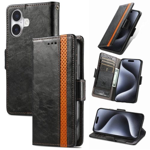 Funda para iPhone 16 Neo Splicing con Hebilla Magnética Doble Funda de Cuero (Negra)