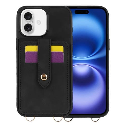 Funda para Teléfono iPhone 16 con Cordón y Tarjetero Tipo Bandolera (Negra)