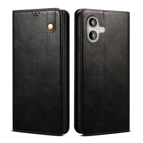 Pour iPhone 16 Plus Étui en cuir à texture Crazy Horse à la cire d'huile (Noir)