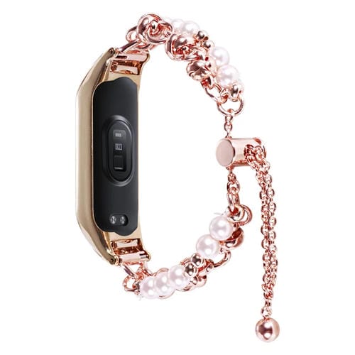 Banda de Reloj de Metal para Xiaomi Mi Band 5 / 6 con Doble Cordón de Perla (Oro Rosa)