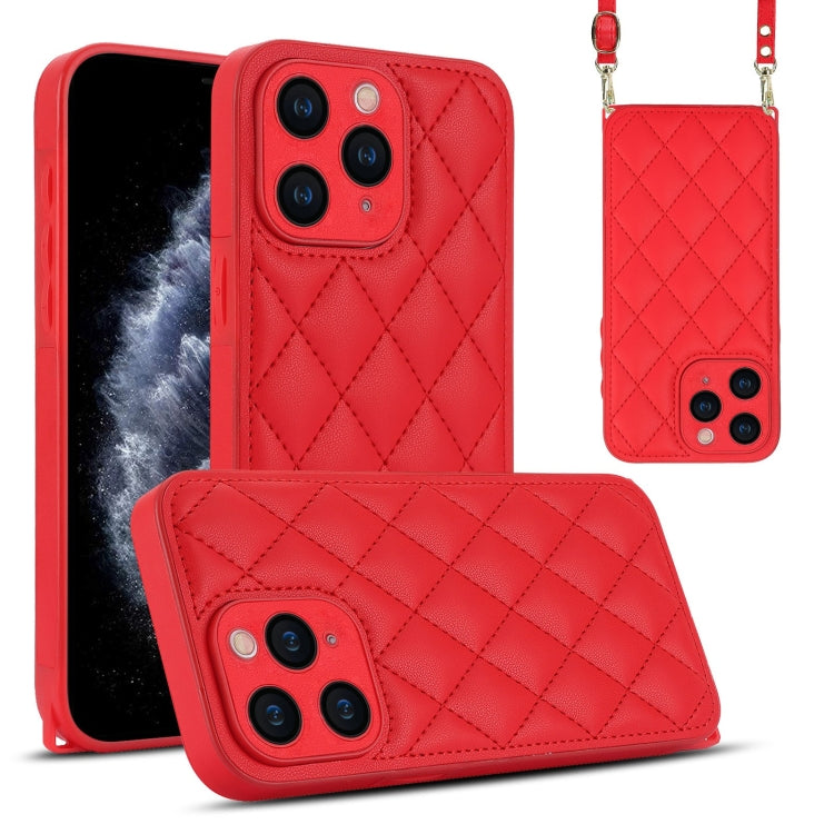Estuche para Teléfono iPhone 11 Pro Max Textura Rómbica Cordón Doble (Rojo)