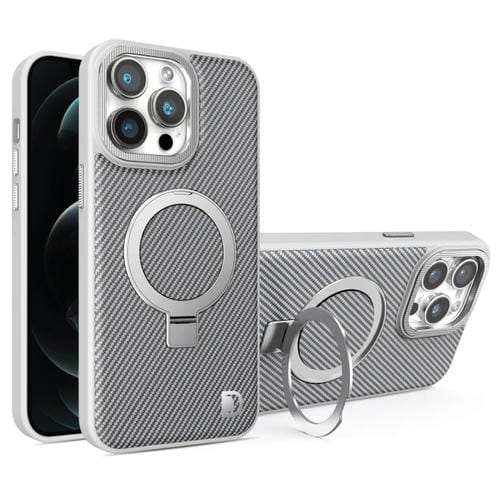Funda para Teléfono Fibra de Carbono con Soporte Magsafe para iPhone 12 Pro Max (Gris)