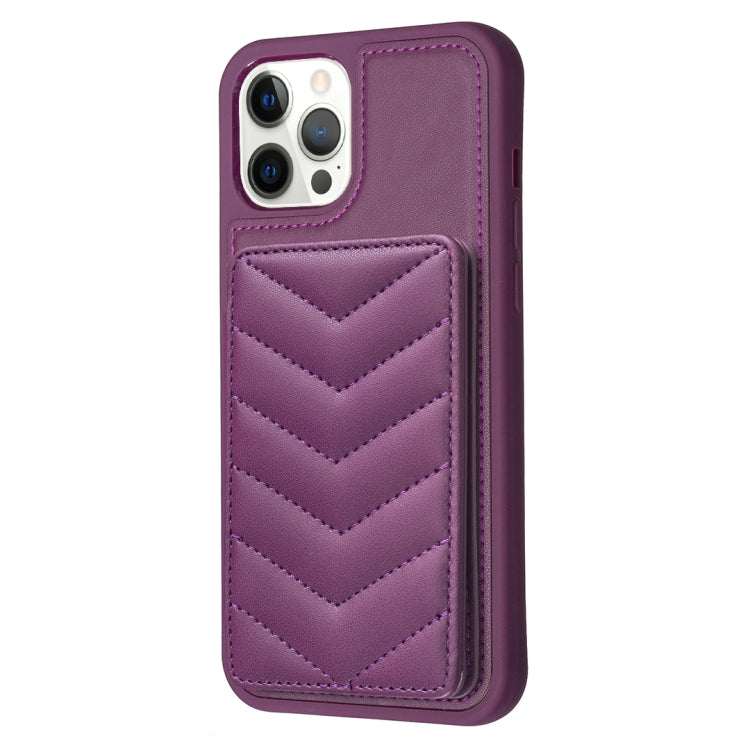 Funda para TelĂ©fono iPhone 12 Pro Max Bf26 Wave Pattern Card Bag Holder (PĂșrpura Oscuro)