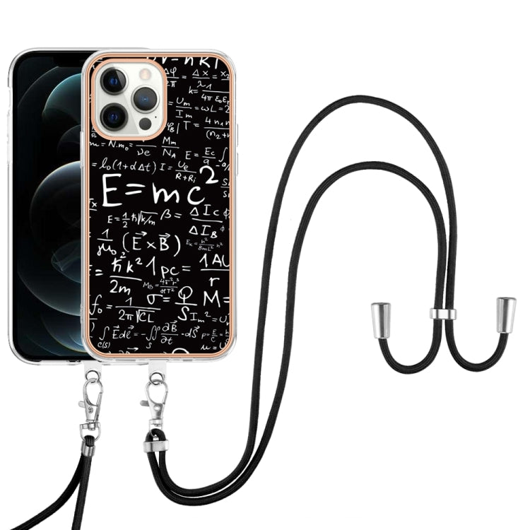 For iPhone 12 Pro Max Double-sided Electroplating IMD Phone Case with Lanyard (Equation)