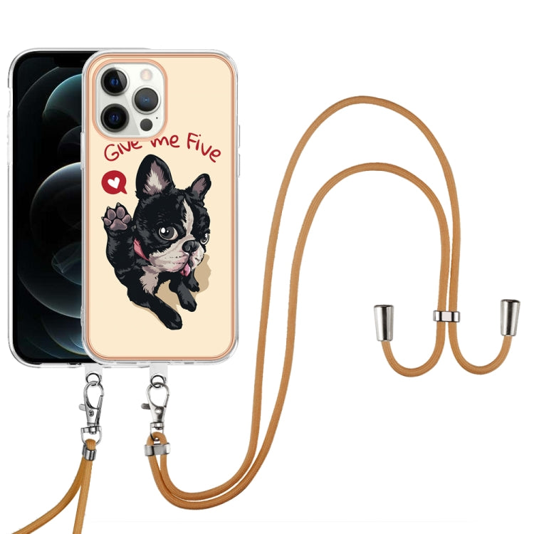 For iPhone 12 Pro Max Double-sided Electroplating IMD Phone Case with Lanyard (Lucky Dog)