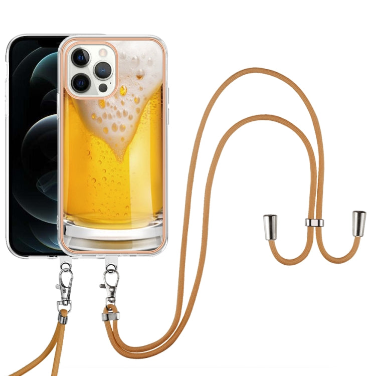 For iPhone 12 Pro Max Double-sided Electroplating IMD Phone Case with Lanyard (Draft Beer)