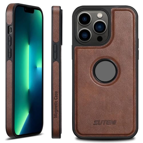 Funda Trasera Suteni G2 para iPhone 13 Pro Max Cuero con Soporte Magsafe (Marrón)