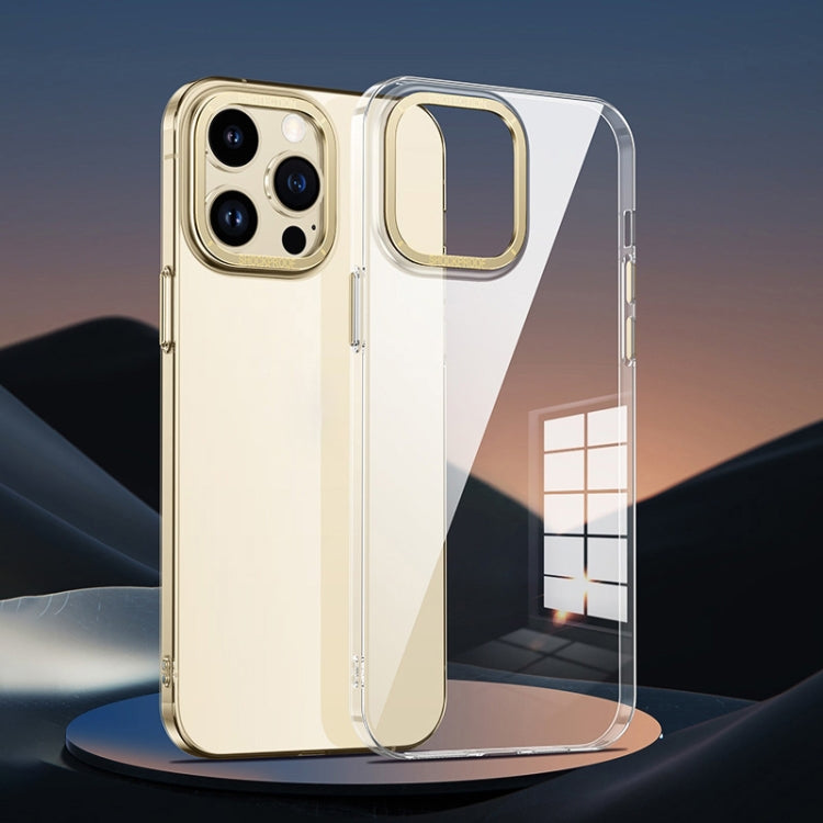 Pour iPhone 13 Pro, anneau d'objectif en métal, étui de téléphone PC transparent (or)