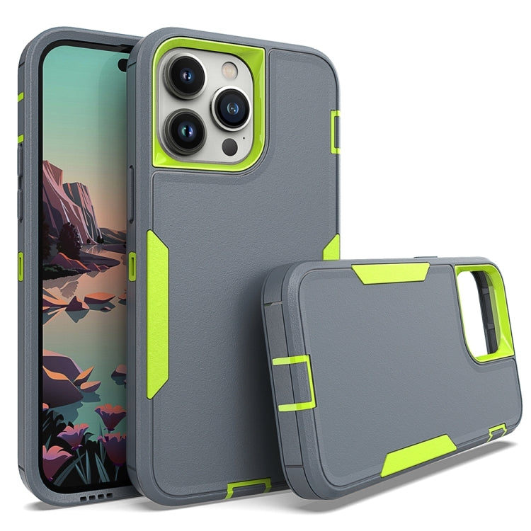 Funda para iPhone 14 Pro Max 2 en 1 Magnética PC + TPU (Gris + Verde Fluorescente)