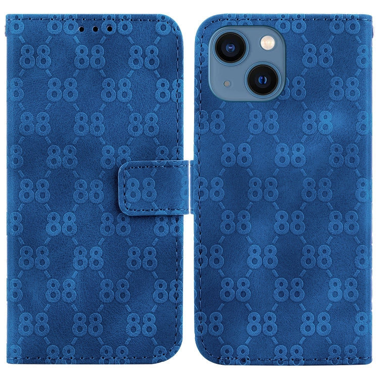 Estuche para Teléfono iPhone 14 Cuero En Relieve Doble Forma de 8 (Azul)