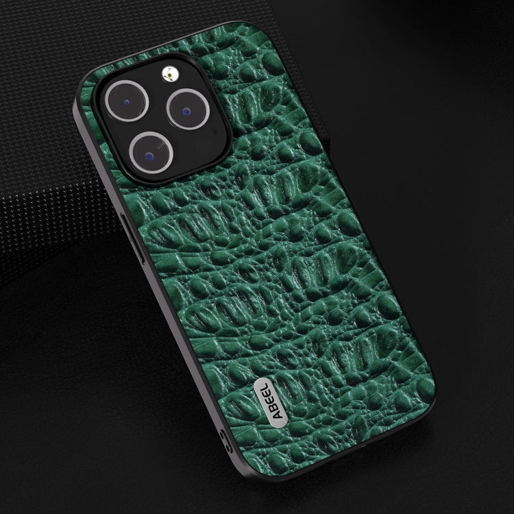 For iPhone 15 Plus ABEEL Black Edge Wave Genuine Leather Phone Case (Green)