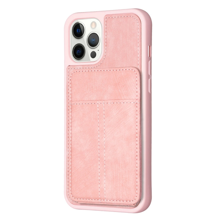 For iPhone 15 Pro Max BF28 Phone Case with Frosted Card Bag and Holder (Pink)