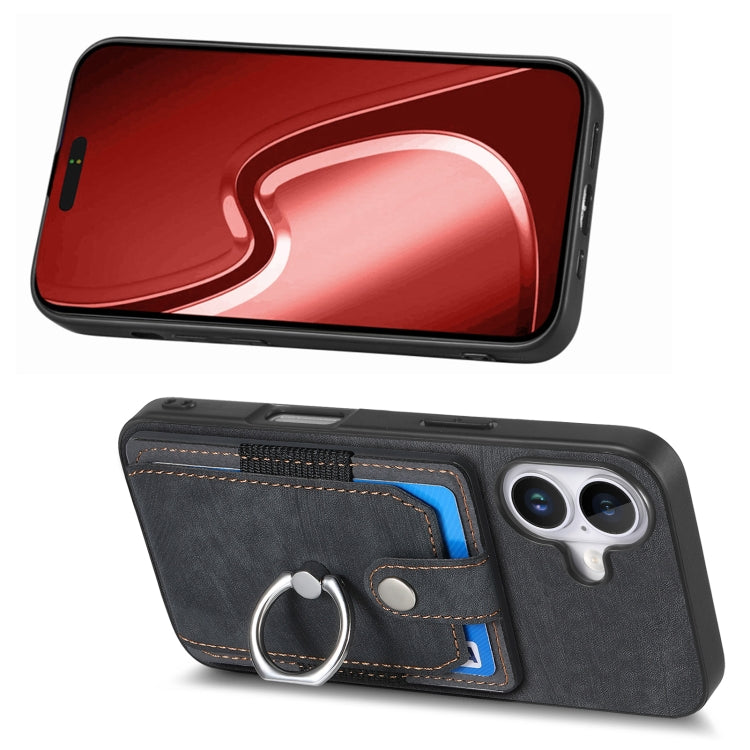 Funda Tipo Billetera con Anillo y Tarjetero para iPhone 16 Plus (Negra)