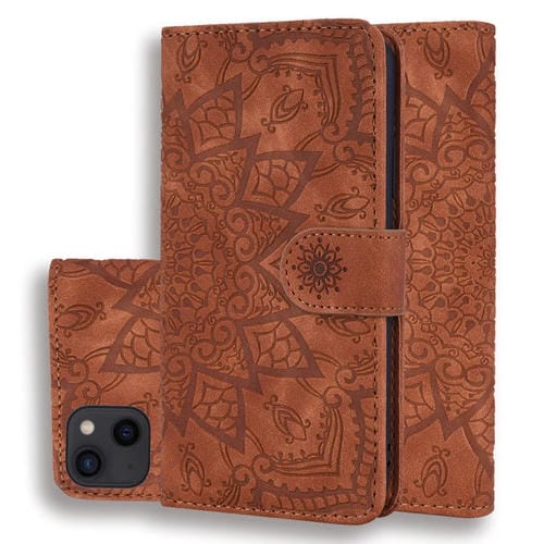 Funda de Cuero con Relieve de Flor de Tótem para iPhone 16 Pro Max (Dorada)