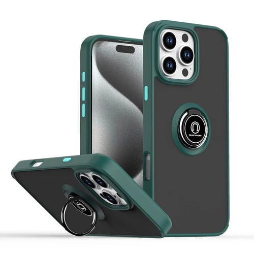 Funda TPU + PC con Anillo para iPhone 16 Pro Max Q Shadow 1 Series (Verde Oscuro)