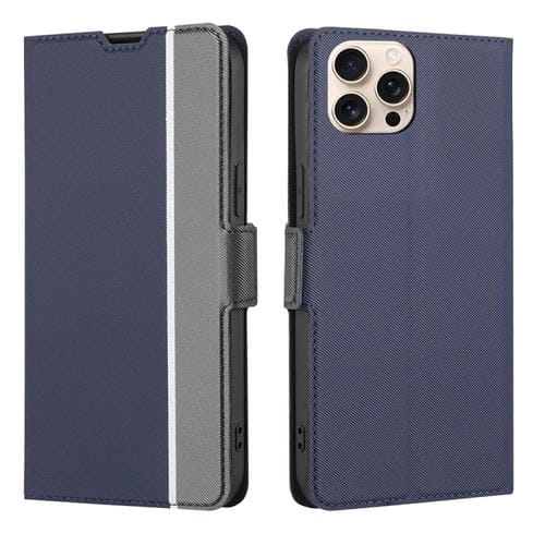 Funda de Cuero con Textura de Sarga y Botones Laterales para iPhone 16 Pro (Azul)
