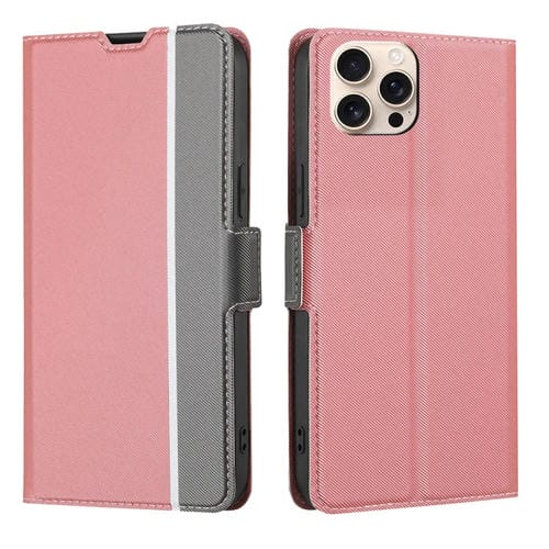 Funda de Cuero para iPhone 16 Pro con Textura de Sarga y Botones Laterales (Rosa)