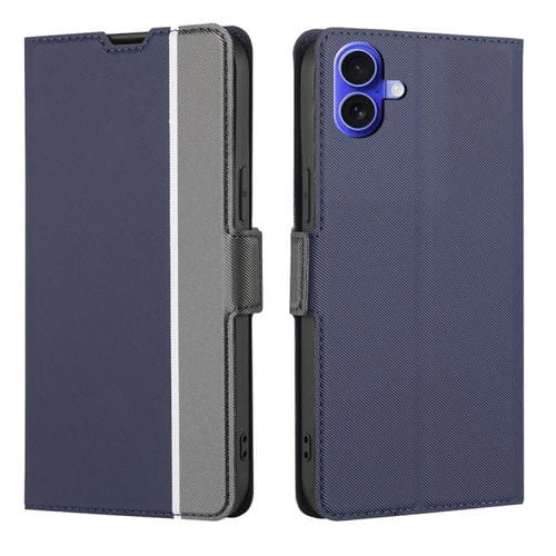 Funda de Cuero Textura de Sarga con Botones Laterales para iPhone 16 (Azul)