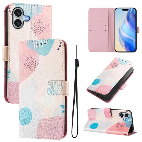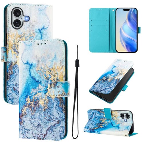 Funda de Cuero para iPhone 16 PatrĂłn de Dibujo ArtĂstico (MĂĄrmol OceĂĄnico)