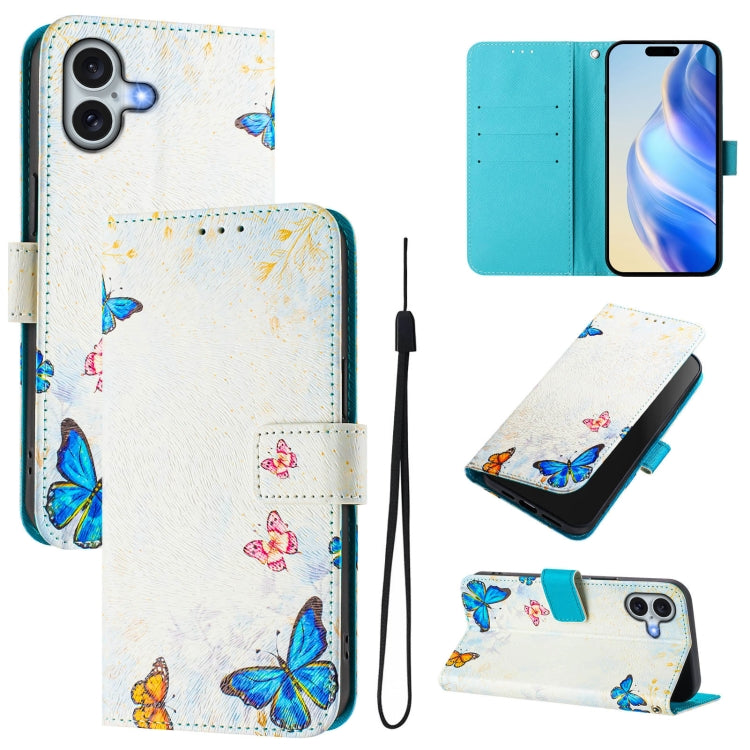 Funda de Cuero para iPhone 16 con Diseño de Dibujo ArtĂstico Casa de Mariposas