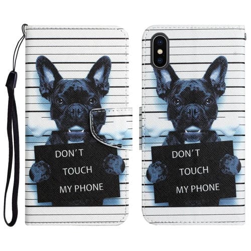 Colored drawing leather phone case for iPhone 7 Plus / 8 Plus (black dog)