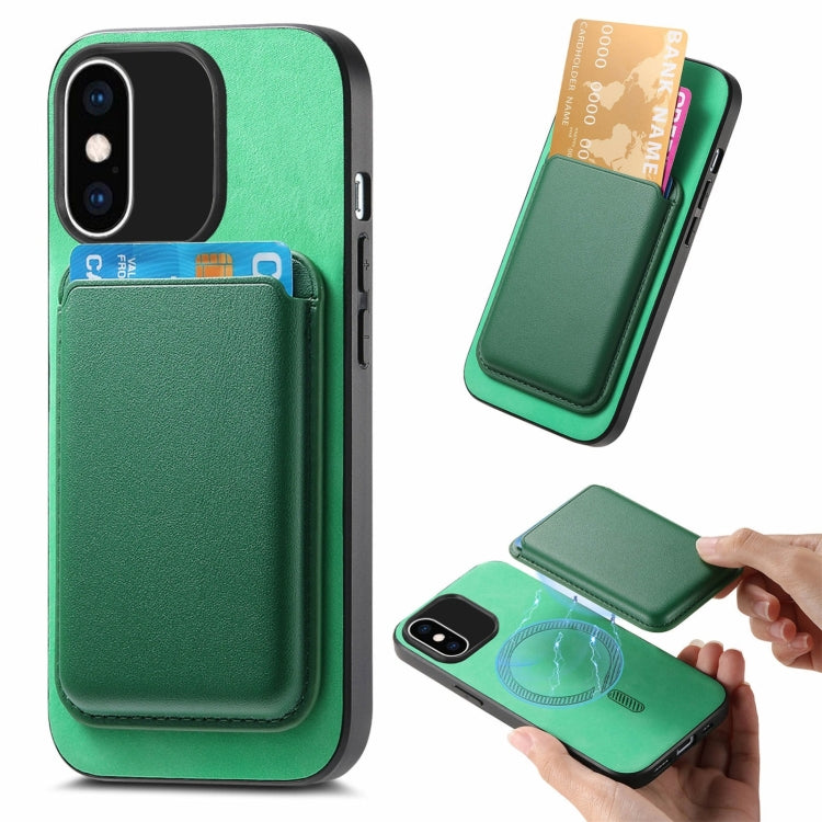 Funda para Teléfono iPhone Xs Max Retro Magsafe Card Bag Pu con Contraportada (Verde)