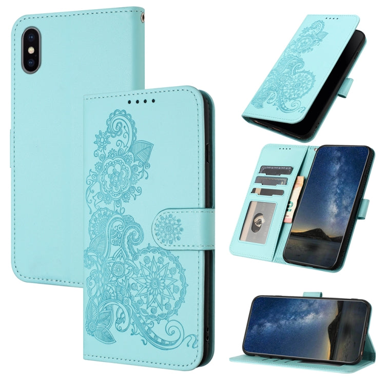Funda de Cuero para iPhone Xs Max Datura Flower con Tapa en Relieve (Verde Oscuro)