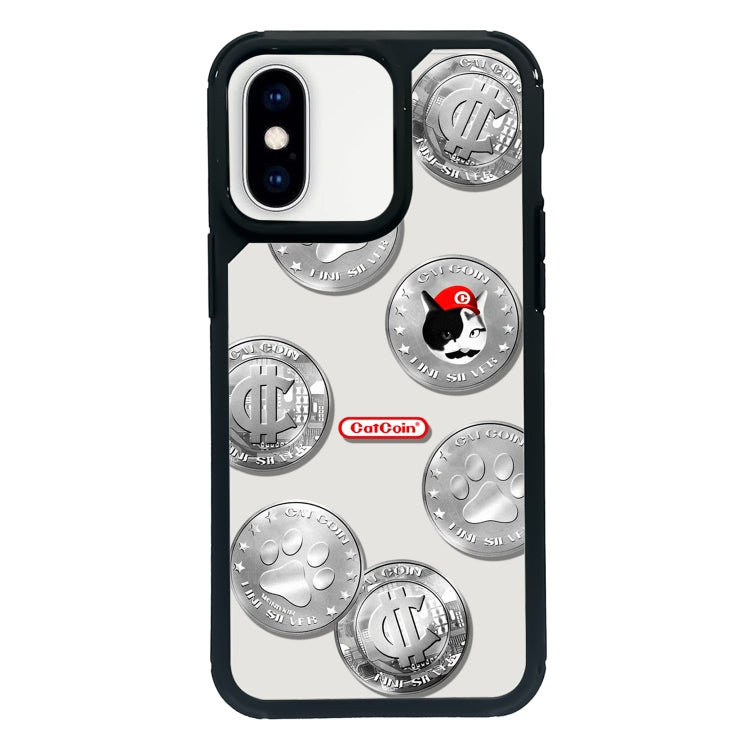 Funda para Teléfono PC iPhone Xs Max Cobertura Total (Gato con Moneda Plateada)