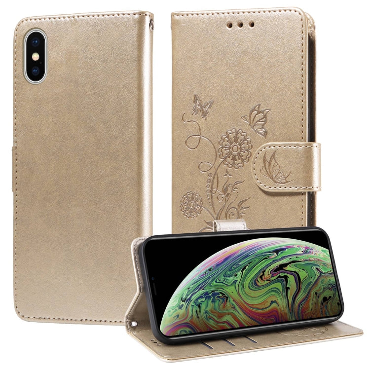 Funda de Cuero Apple iPhone X/Xs Diseño Mariposas y Flores En Relieve (Oro Rosa)
