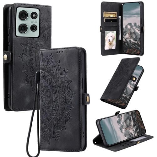 Funda de Cuero para Motorola Moto G75 5G con Ranura para Tarjetas y CordĂłn (Negro)