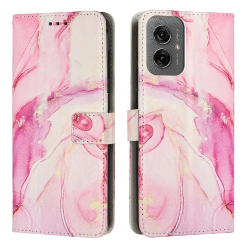 Funda de Cuero Motorola Moto G34 con PatrĂłn de MĂĄrmol Pintado (Oro Rosa)