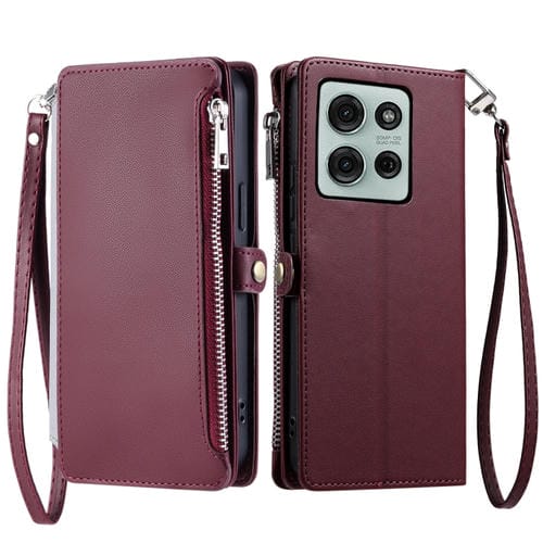 Funda para Motorola Moto G75 5G con Cremallera y Ranura para Tarjetas (Rojo Vino)