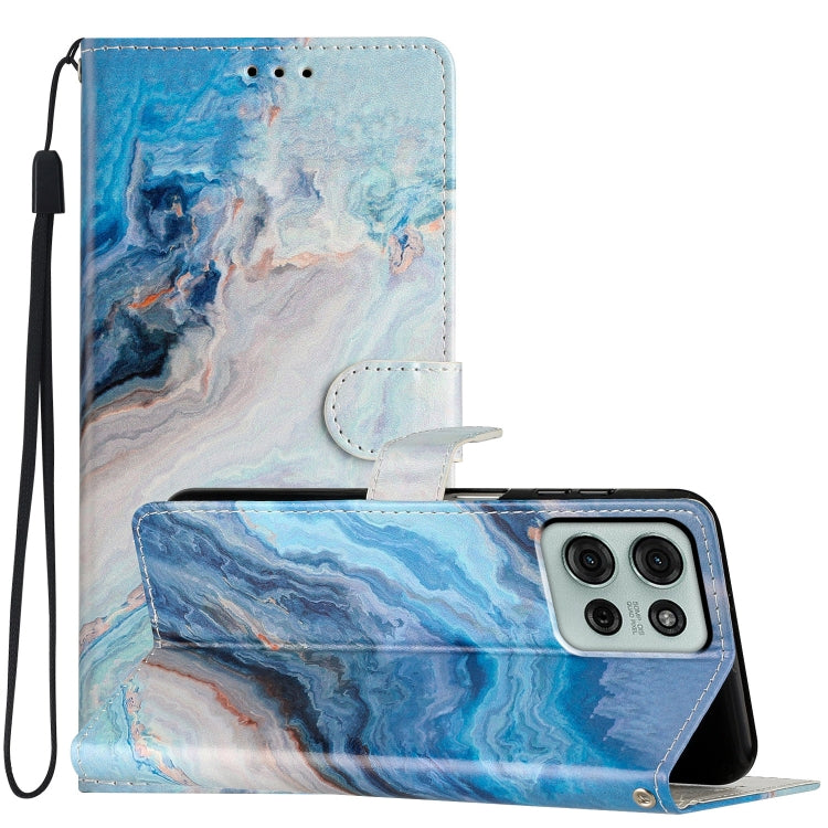 Funda de Cuero Motorola Moto G75 5G con Dibujo de Colores (Mármol Azul)