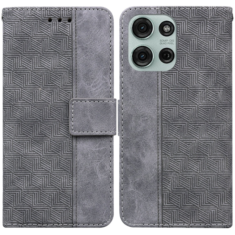 Funda de Cuero con Relieve Geométrico para Motorola Moto G75 5G (Gris)