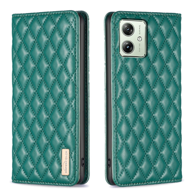 Funda de Cuero para Motorola Edge 40 con Hebilla Magnética y Textura Rombo (Verde)