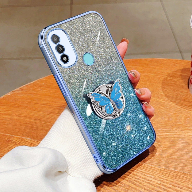 Funda TPU para Motorola Moto E20 con Soporte Mariposa y Brillo Degradado (Azul Sierra)