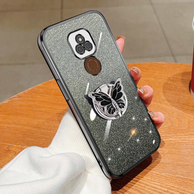 Funda TPU para Motorola Moto E7 Plus con Soporte de Mariposa y Brillo Degradado (Negro)