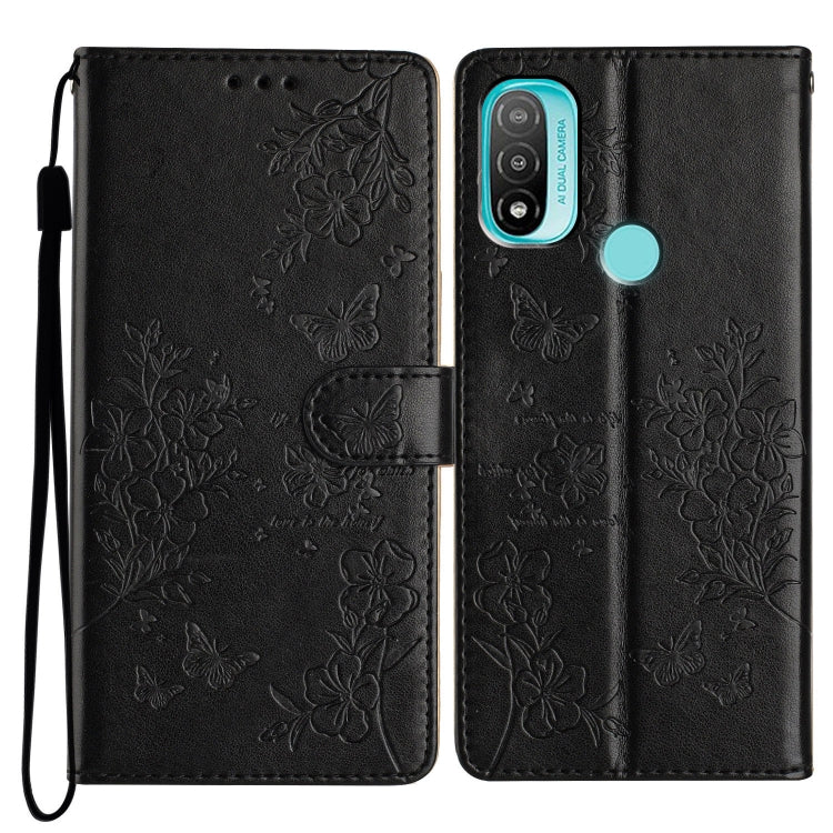 Funda de Cuero para Motorola Moto E40 con Mariposas y Flores (Negro)