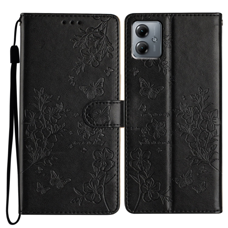 Funda de Cuero para Motorola Moto G14 con Mariposas y Flores (Negro)
