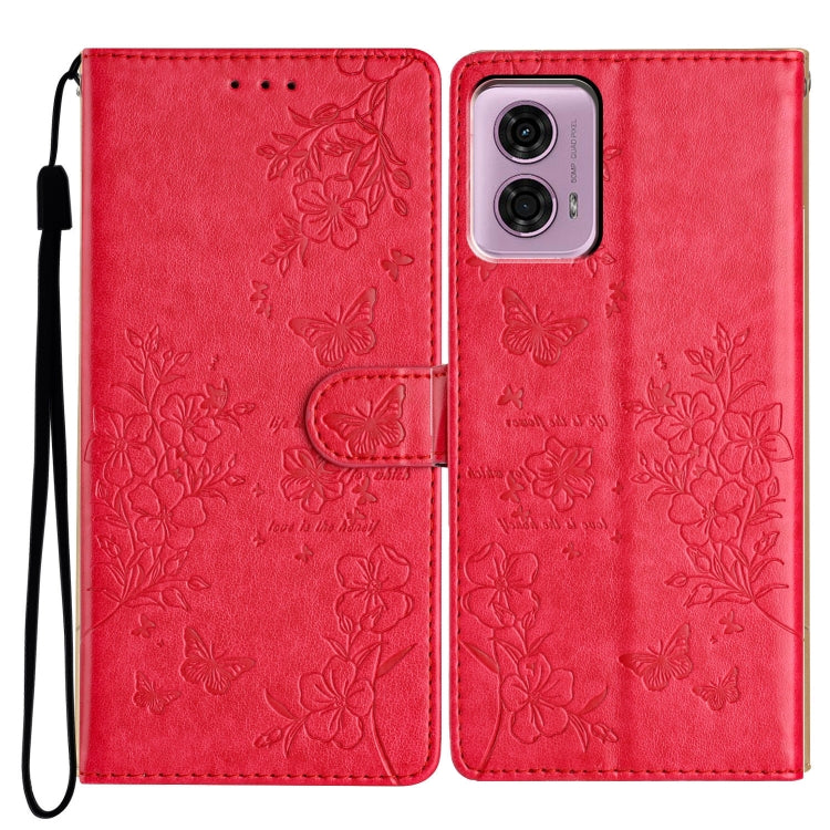 Funda de Cuero para Motorola Moto G Play 5G (2024) con Mariposas y Flores (Rojo)