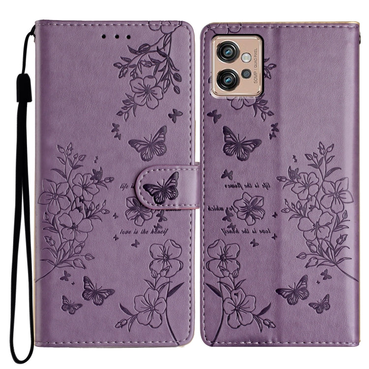 Funda de Cuero para Motorola Moto G32 con Mariposas y Flores (PĂșrpura)