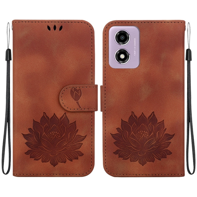 Funda para Motorola Moto G04S y Moto E14 de Cuero con Relieve de Loto (MarrĂłn)